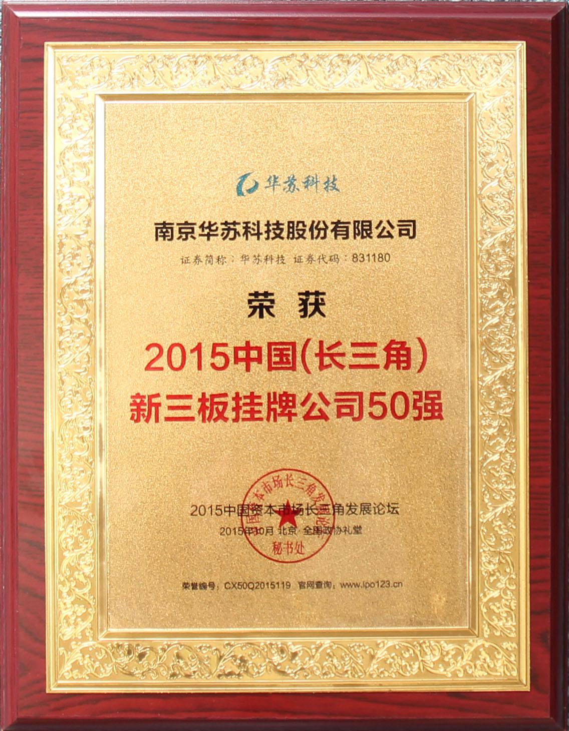 華蘇科技 榮獲“2015中國(長三角)新三板掛牌公司50強”
