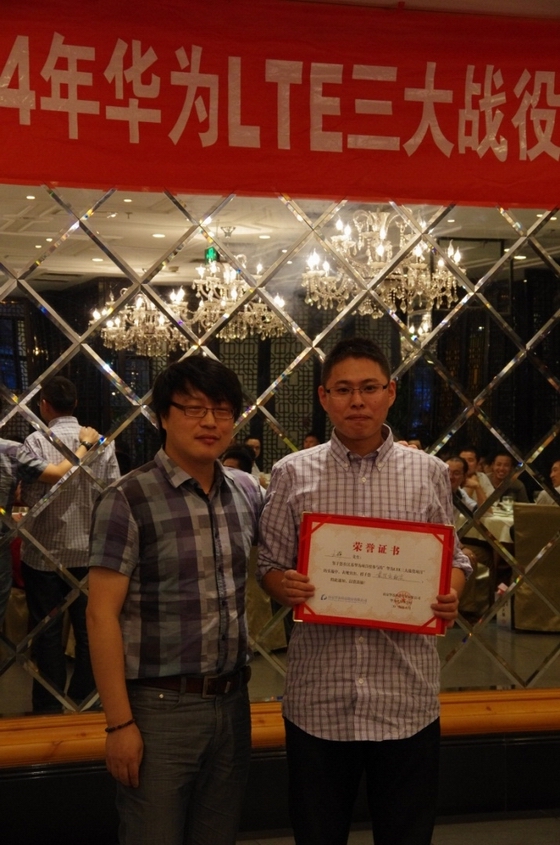 ? 2014年5月,獲LTE三大戰役優秀進度獎,劉永升、甄文興獲華為優秀個人 。
