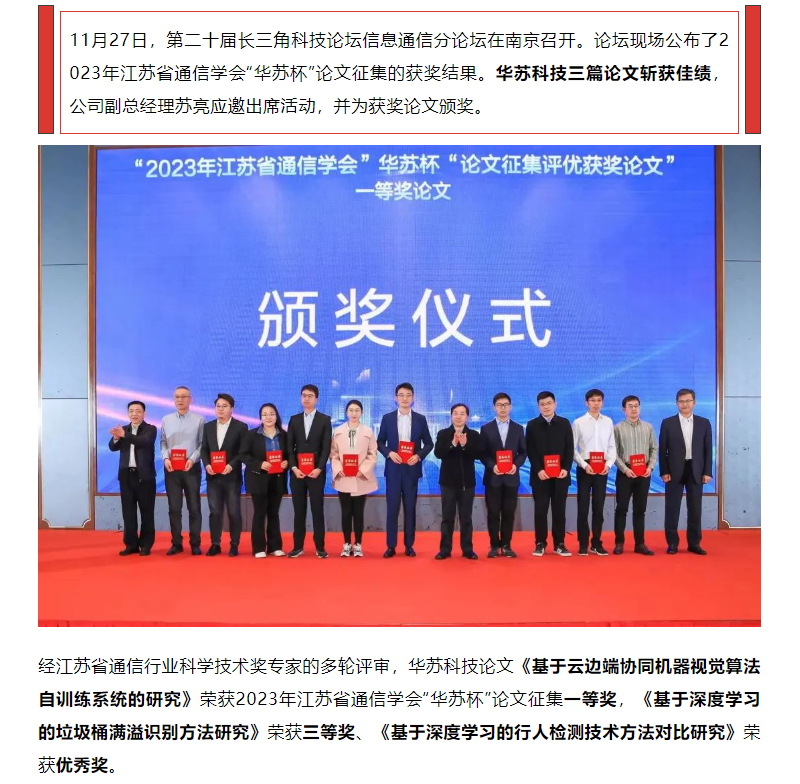喜訊!華蘇科技在2023年江蘇省通信學(xué)會“華蘇杯”論文征集中斬獲佳績