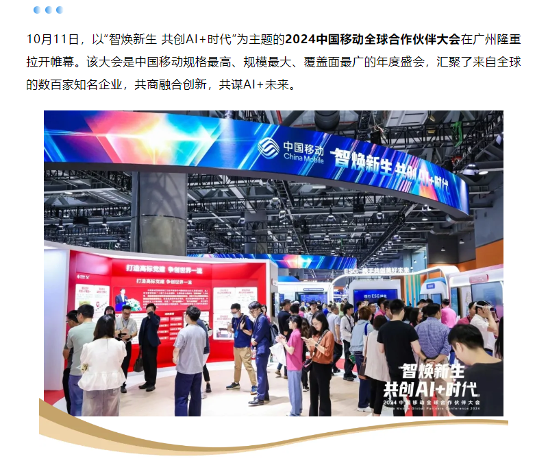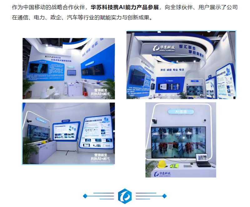 作為中國移動的戰(zhàn)略合作伙伴,華蘇科技 攜AI能力產(chǎn)品參展2024中國移動全球合作伙伴大會,