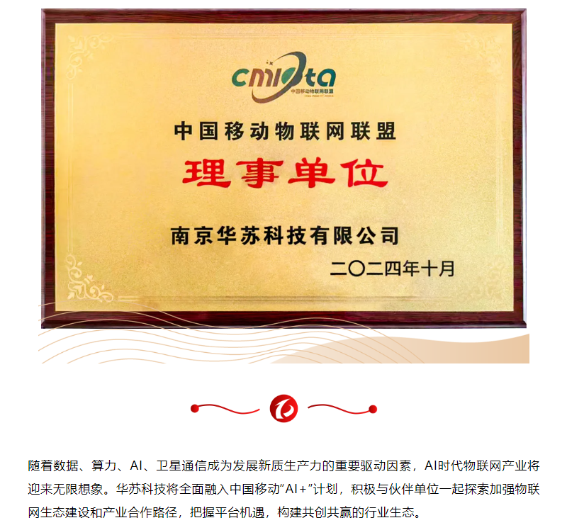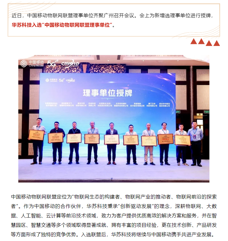 華蘇科技入選“中國移動物聯(lián)網(wǎng)聯(lián)盟理事單位”